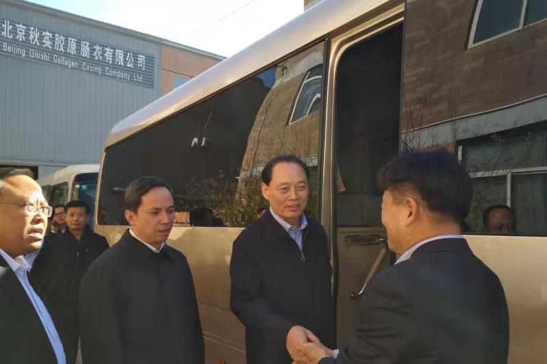 11月9日上午,国家农业农村部党组副书记、副部长余欣荣,北京市副市长卢彦,北京市委农工委书记李志军等一行领导莅临北京秋实农业股份有限公司就天然肠衣和动物胶原蛋白肠衣发展情况进行了深入调研了解,北京秋实农业股份有限公司(以下简称“秋实农业”)董事长杜大雪、北京秋实胶原肠衣有限公司总经理李强等进行了热情的接待。